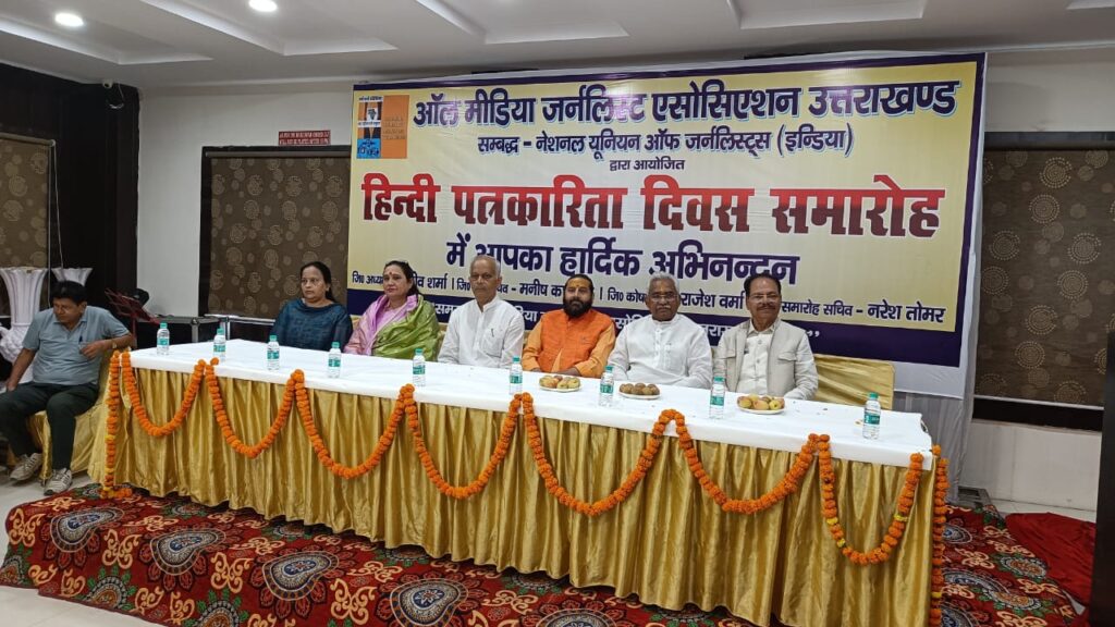 पत्रकारों की प्रतिष्ठित संस्था ऑल मीडिया जर्नलिस्ट एसोसिएशन ने आज हिंदी पत्रकारिता दिवस समारोह आयोजन वैभव ग्रांड होटल हरिद्वार में आयोजित किया, जिसमें पत्रकारों की सुरक्षा का मुद्दा और पत्रकारिता से जुड़े तमाम अहम सवालों को उठाया गया ।
